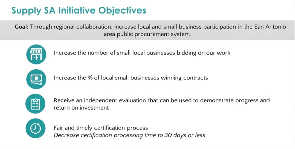 Our goal is to increase local and small business participation in SATX procurement through regional collaboration.